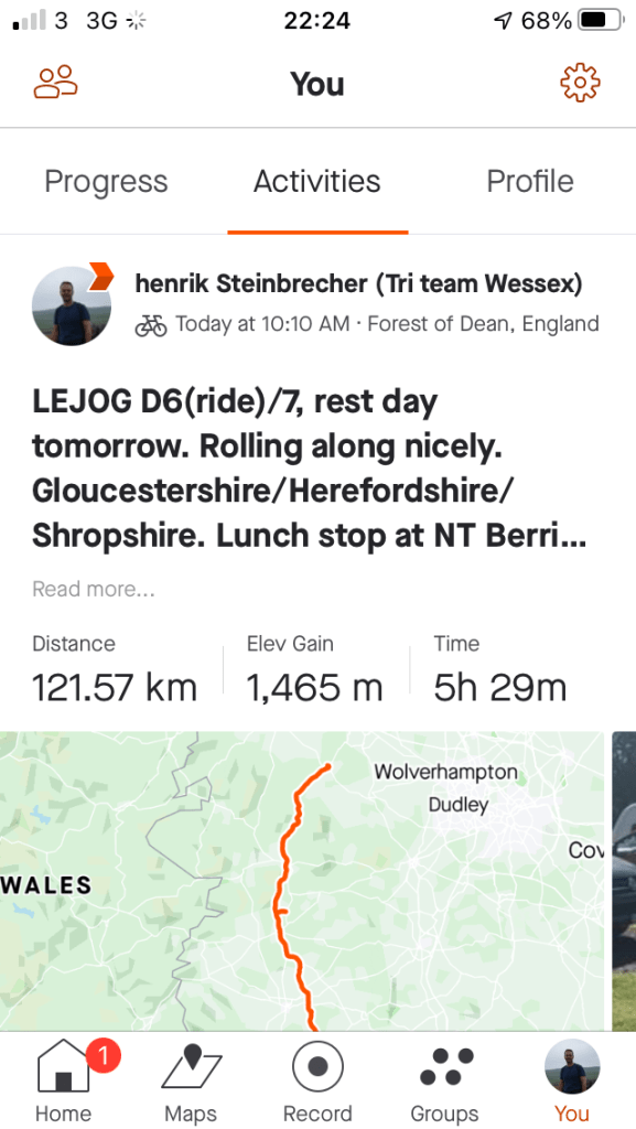 2 nd part was last 55 km or so to campsite in Much Wenlock . Why do campsites always have a significant uphill to them ????