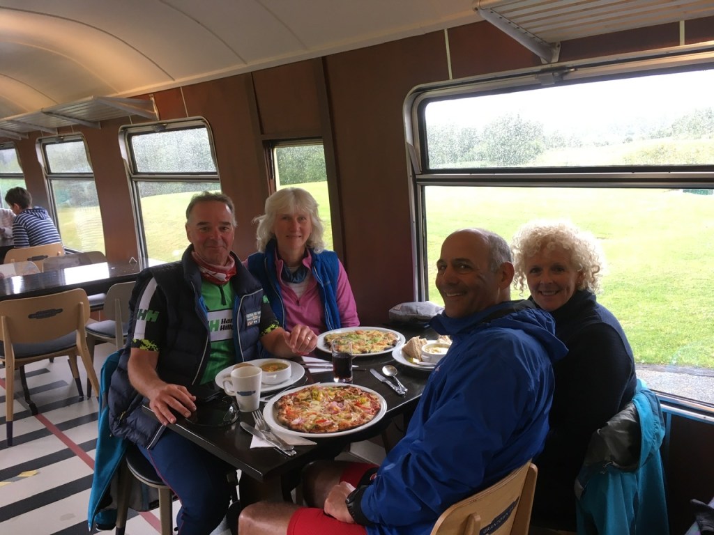 Another windy, drizzly (the type that drenches you) hour later we had joined Carol and Jill at the lunch stop rendezvous- the Highland Heritage Centre cafe/ restaurant housed in two railway carriages.