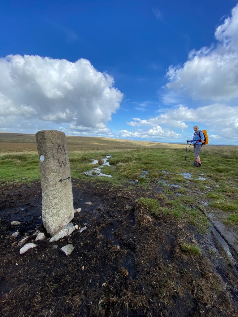 Then across a fairly unmarked bit of petty soggy moor. Easily to get lost in without a compass and map – if the weather is in the least bit dodgy. Apparently that bit is called the Abbots Way, a route that various monks took from one place to another.