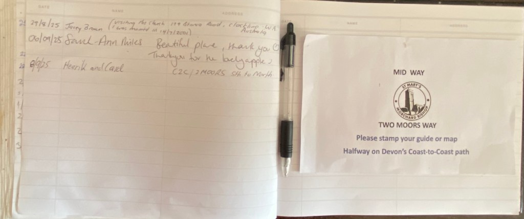 β¦apparently exactly half way along the 2 Moors Way so had to sign the book , naturally